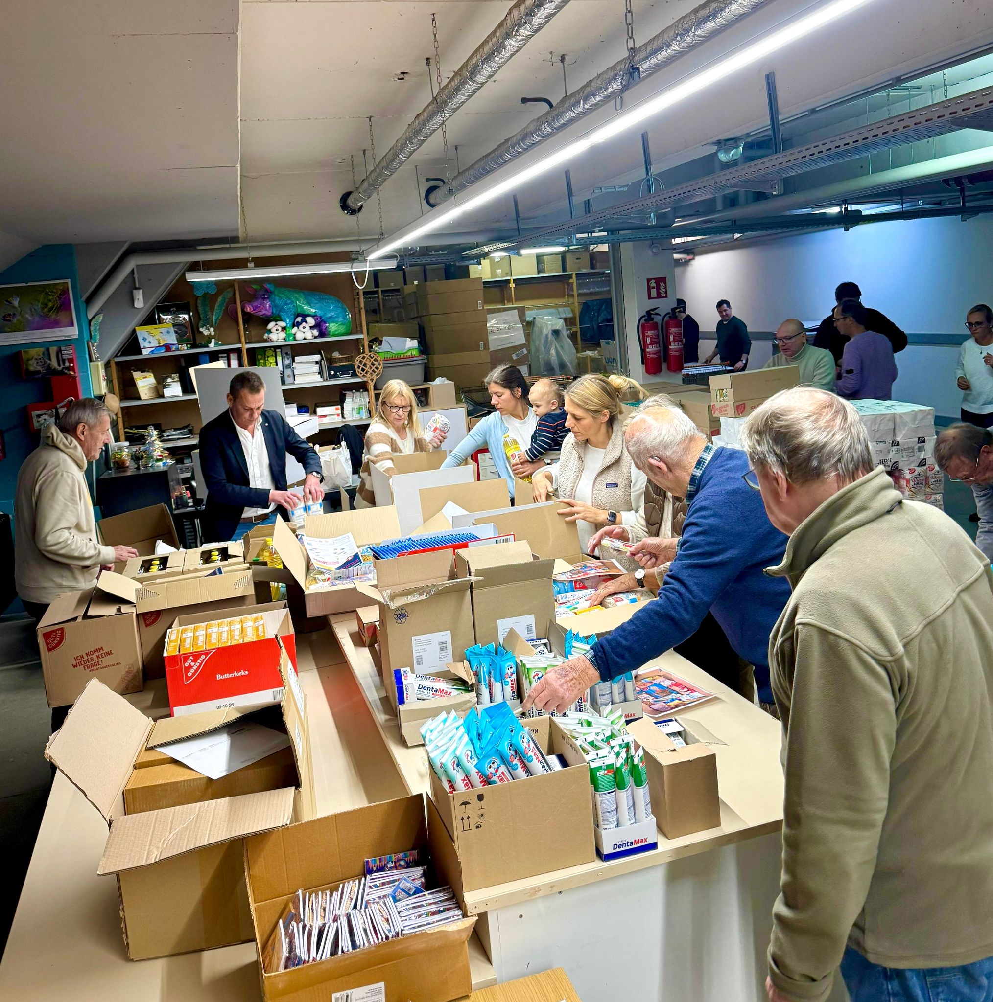 Begonnen haben unsere vorweihnachtlichen Aktivitäten mit dem gemeinschaftlichen Packen von 200 Paketen für die Johanniter Weihnachtstrucker. In den von unserem Lionsfreund Steffen Rißmann zur Verfügung gestellten Räumlichkeiten des Modehaus Steingass wurden anhand einer vorgegebenen Packliste Lebensmittel und Hygieneartikel zusammengestellt, die dann von den Johannitern in Schulen und Kinderheimen, in Krankenhäuser und Altenheimen vorwiegend in Ländern Südosteuropas verteilt werden.